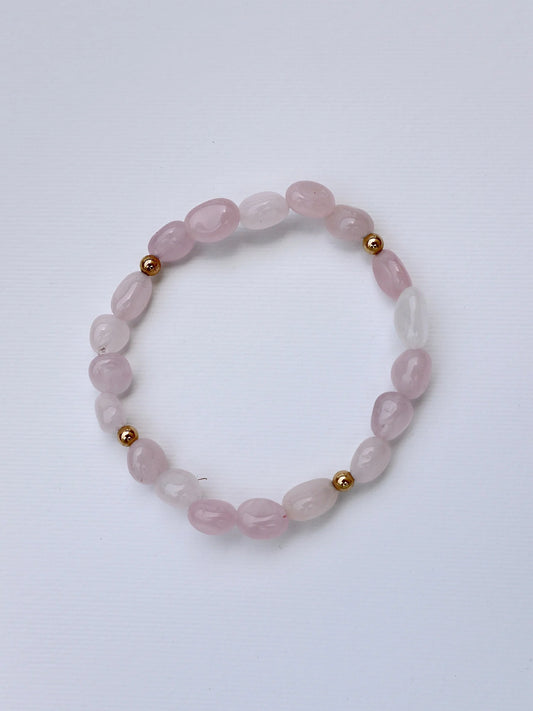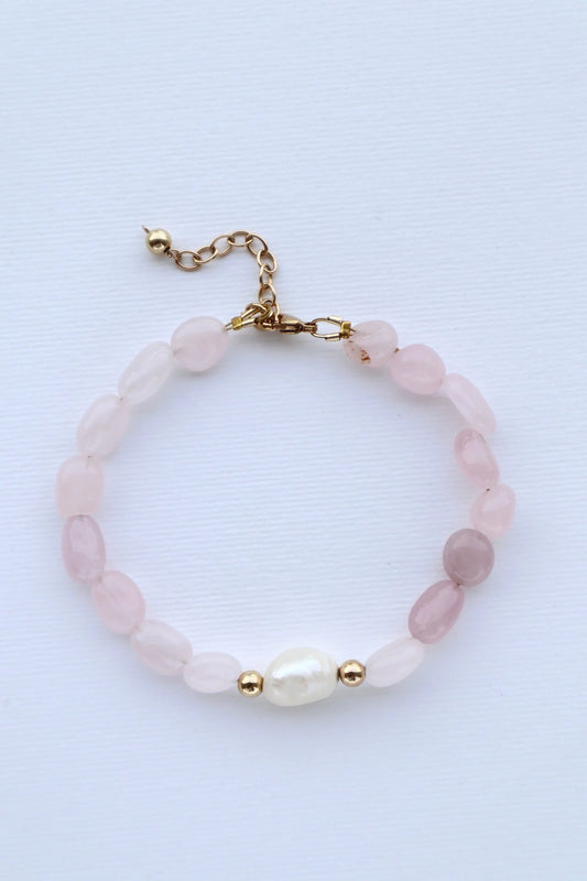 Rose Quartz Bracelet | 14k gold-filled | Freshwater Pearl