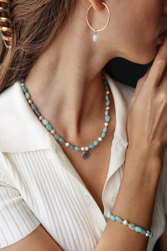 Amazonite Earrings Hoops | 14k Gold-Filled