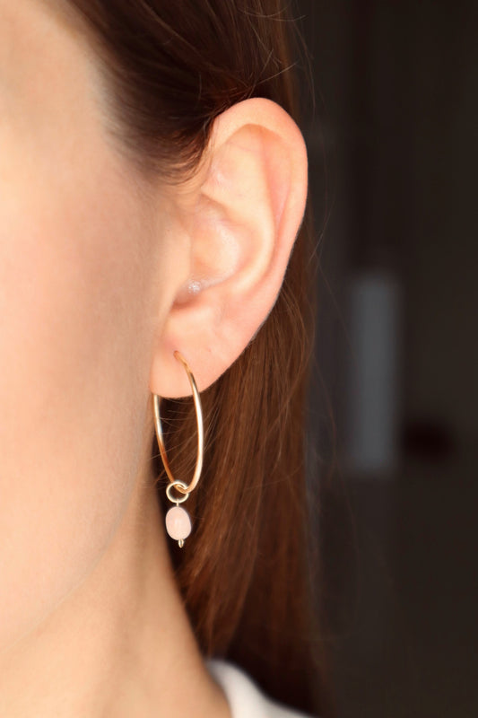 Rose Quartz Earrings Hoops | 14k Gold-Filled