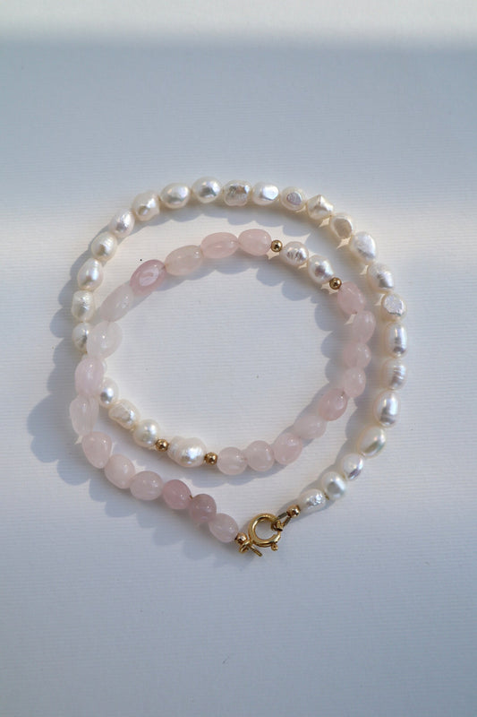 Rose Quartz Necklace | 14k Gold-Filled | Freshwater Pearl