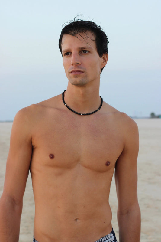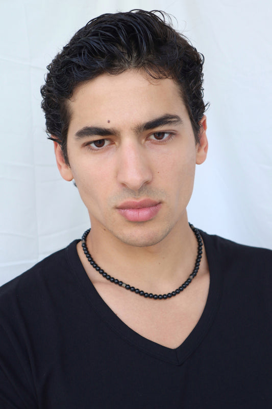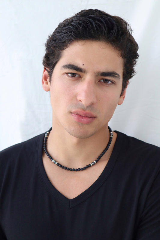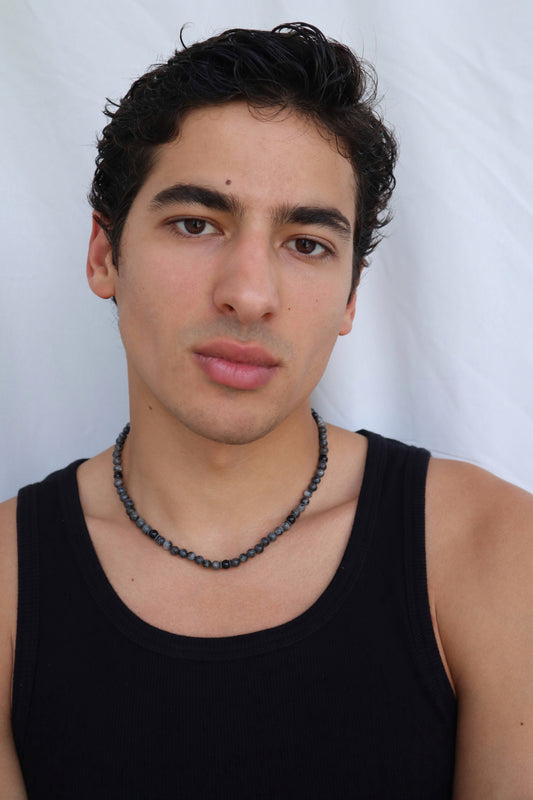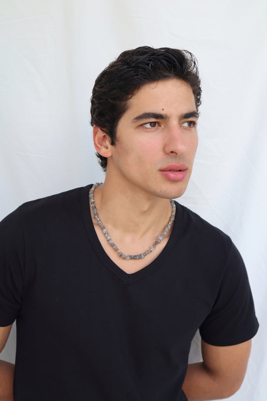 Mens Labradorite & Onyx beaded Necklace | 925 Sterling Silver