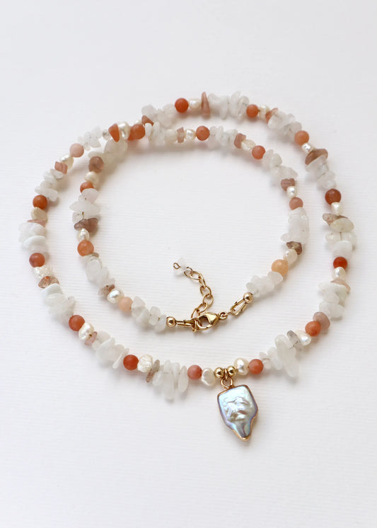 Moonstone & Red Aventurine | Freshwater Pearls | Mother of Pearl Pendant | 14K Gold-Filled