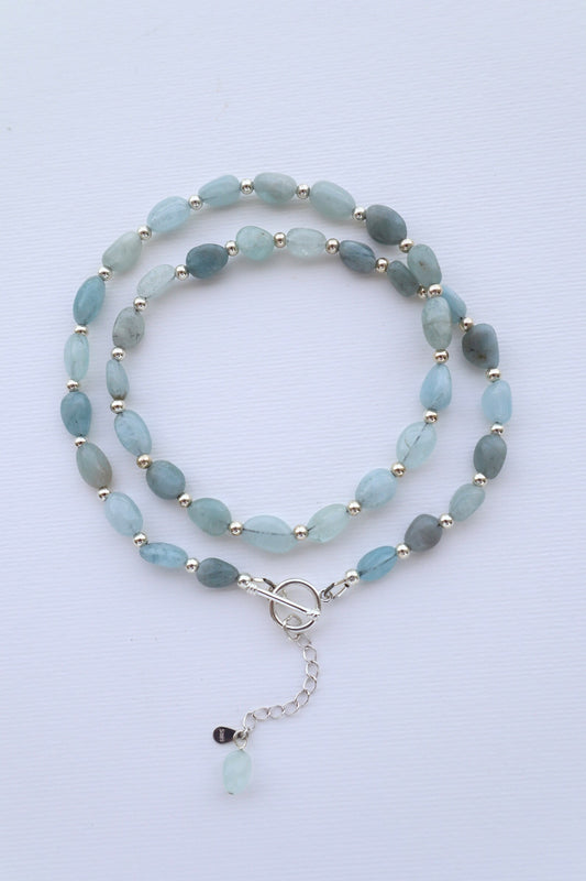 Blue Morganite Necklace | OT Toggle | 925 Sterling Silver | Gemstone Jewellery