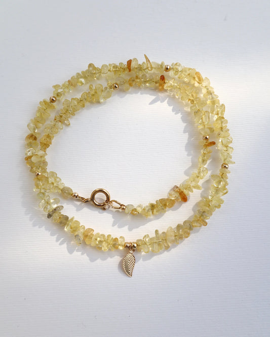 Citrine Necklace | 14k Gold-Filled | Leaf Charm